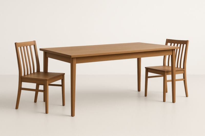 Table à manger rectangulaire en bois marron avec 2 chaises